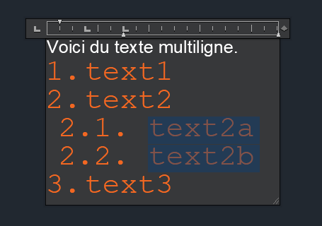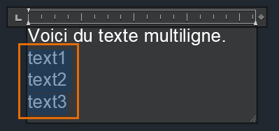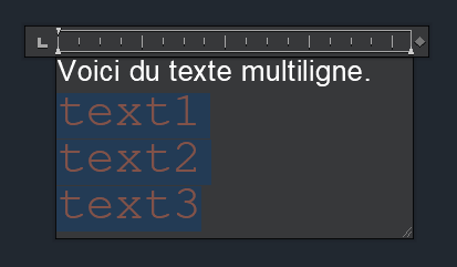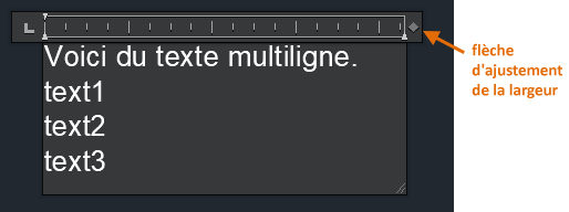 Conseil : Double-cliquez sur la flèche de redimensionnement de la largeur de la règle pour limiter automatiquement la zone de contour aux limites de l'objet TextMult. Cette méthode permet de mieux contrôler le retour automatique à la ligne de l'objet TextMult.