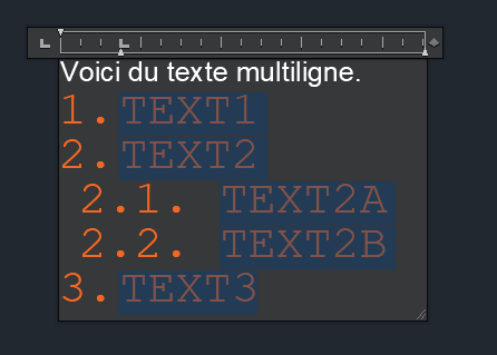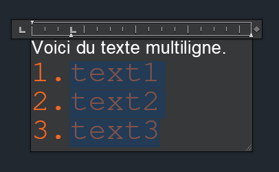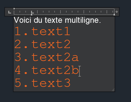 Pour ajouter de nouveaux éléments de liste après text2, placez le curseur après text2 et appuyez sur Entrée.