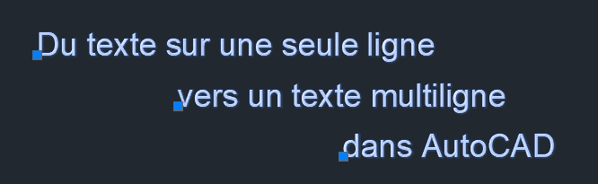 Remarque : Pour convertir un objet TextMult en objets texte sur une seule ligne distincts, entrez x (DECOMPOS) sur la ligne de commande et sélectionnez les objets TextMult à décomposer.