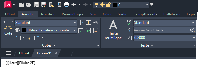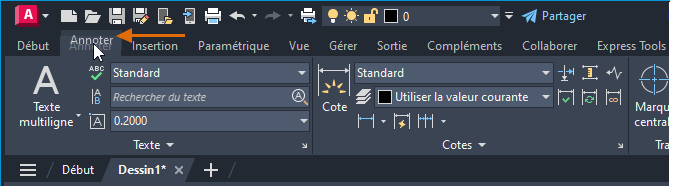 Dans cet exercice, vous allez repositionner l'onglet Annoter et le groupe de fonctions Cotes.