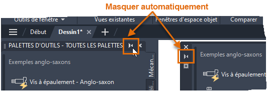 Lorsque vous déplacez le curseur sur la palette réduite, elle se déplie temporairement.