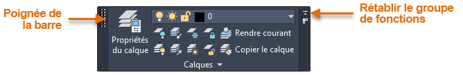 Déplacez le pointeur sur le groupe de fonctions Calques pour le repositionner à l'aide de la barre de poignée ou cliquez sur Retour au groupe de fonctions pour redéplacer le groupe de fonctions vers l'onglet de ruban dont il provient.