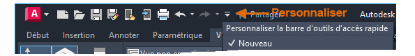 Dans cet exercice, vous allez ajouter l'outil Tracé par lot et la liste déroulante Calques à la barre d'outils d'accès rapide, tout en supprimant l'outil Tracé.