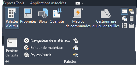 Le bouton de la palette Propriétés et le bouton Palettes d'outils du ruban doivent désormais être mis en surbrillance dans l'onglet Vue.