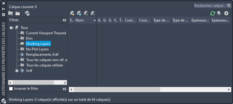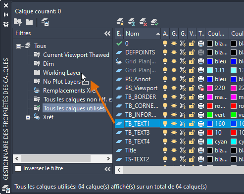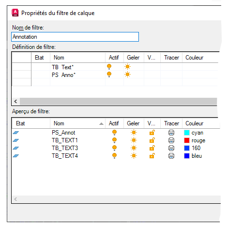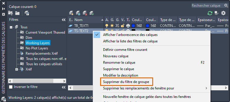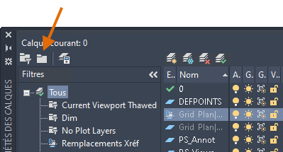 Remarque : Lorsque des calques sont ajoutés au dessin qui correspond aux propriétés du filtre, ils sont automatiquement ajoutés à la liste des filtres.