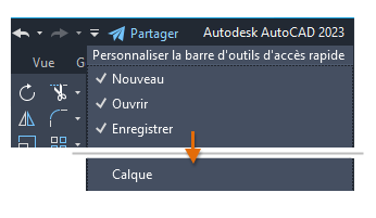 Lorsque le ruban est réduit, l'accès aux outils du groupe de fonctions Calques n'est pas aussi pratique. Toutefois, vous pouvez ajouter la liste déroulante Calque à la barre d'outils d'accès rapide à la place.
