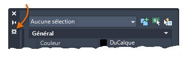 Deux des palettes les plus utilisées sont les suivantes : Propriétés et Gestionnaire des propriétés des calques. L'ancrage conjoint de ces deux palettes avec l'option Masquer automatiquement constitue un compromis entre perdre deux sections de la zone de dessin en échange d'un accès en déplacement instantané.