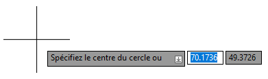 Avant d’aborder la saisie des coordonnées, nous devons parler de la saisie dynamique. La saisie dynamique est une fonctionnalité qui permet de spécifier des coordonnées, des longueurs et des valeurs angulaires à proximité du réticule, au même titre que les chaînes de texte et les options de commande.