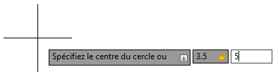 Voici les étapes à suivre pour dessiner un cercle dont les coordonnées du centre sont 3.5,5 et dont la valeur du rayon est 1.25 à l’aide de la saisie dynamique :