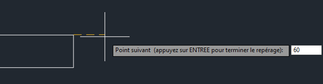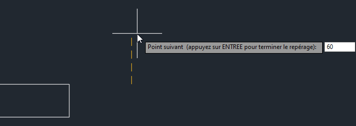 Il est parfois nécessaire de définir un emplacement en utilisant un point ou un objet existant comme référence. Par exemple, vous devrez peut-être tracer une ligne commençant à 60 unités vers la droite et à 60 unités au-dessus d’un point existant, mais le dessin ne contient aucun objet sur lequel vous pouvez effectuer un accrochage. Vous avez peut-être aussi une ligne horizontale et une ligne verticale qui ne se croisent pas et vous devez trouver leur point d’intersection. C’est là que le repérage par accrochage aux objets intervient. Vous pouvez utiliser le repérage par l’accrochage aux objets, conjointement avec les accrochages aux objets, pour suivre les trajectoires d’alignement afin de trouver des points précis.