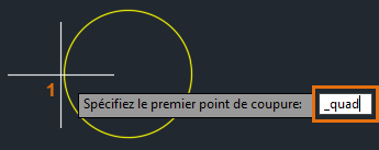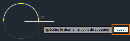 Utilisez de nouveau l’accrochage aux objets QUADrant et spécifiez le deuxième point de coupure.