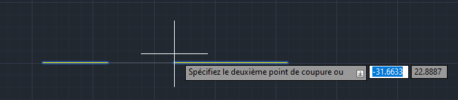 Utilisez l’accrochage aux objets MILieu et spécifiez le premier point de coupure comme milieu de la ligne.