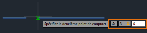 Le point sélectionné sur l’objet constitue, par défaut, le premier point de coupure.