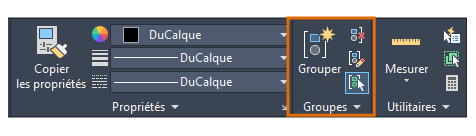 Pour dissocier les objets, utilisez la commande DISSOCIERGROUPE et sélectionnez l’un des objets du groupe. L’association des objets du groupe est supprimée.