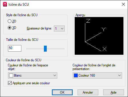 | UCSICON | Contrôle la visibilité, la position, l’apparence et la possibilité de sélectionner l’icône SCU. |