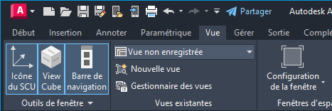 Tout d'abord, si l'icône SCU n'est pas affichée, activez-la en cliquant sur l'onglet Vue et sur le contrôle associé.