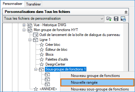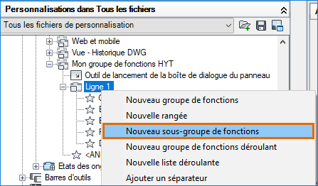 Sous Mon groupe de fonctions HYT, cliquez avec le bouton droit de la souris sur Ligne 1 et choisissez Nouveau sous-groupe de fonctions.