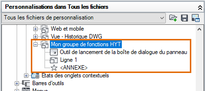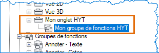 Dans l’éditeur d’interface utilisateur personnalisée, recherchez le groupe de fonctions de ruban que vous venez de créer (Mon groupe de fonctions HYT), si nécessaire.