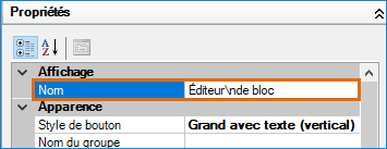 Sous Affichage, dans la zone de texte Nom, tapez Éditeur\nde blocs et appuyez sur la touche Entrée.