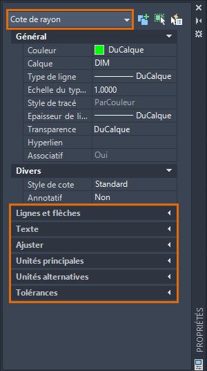 Voici quelques commandes et variables système fréquemment utilisées relatives à la palette Propriétés.
