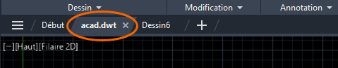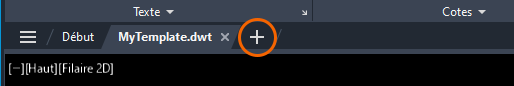 Pour tester facilement les modifications apportées au gabarit, vous devez d’abord l’enregistrer, puis cliquer sur le signe + dans les onglets de dessin pour créer un dessin. Le fait de conserver le gabarit ouvert pour les tests permet d’y apporter des modifications très rapidement.