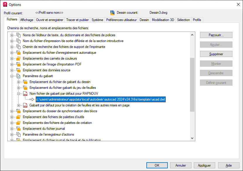 c:\Users\<nom d’utilisateur>\AppData\Local\Autodesk\AutoCAD 2021\R24.0\fra\Template\