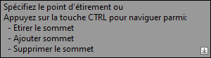 Remarque : lorsque vous utilisez les poignées, vous pouvez sélectionner des points à l'aide de l'une des méthodes habituelles, par exemple en cliquant dans le dessin, en saisissant des coordonnées et en utilisant des accrochages aux objets.