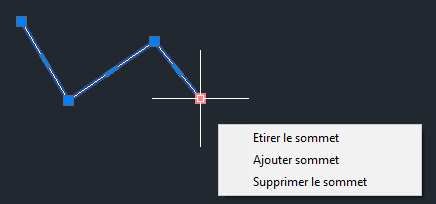 Placez le curseur sur l'une des poignées du milieu du segment pour afficher le menu associé.