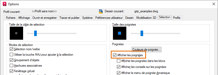 Remarque : l'utilisation d'une fenêtre pour sélectionner plusieurs poignées n'est pas prise en charge.