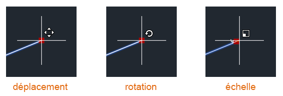 Remarque : les badges de curseur indiquent quand vous êtes en mode de déplacement, de rotation ou de mise à l'échelle, mais pas en mode d'étirement ni de copie miroir.