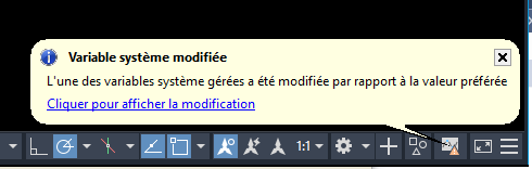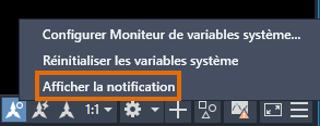Les notifications sont activées par défaut. En cas de modification d’une variable système que vous surveillez, une icône s’affiche dans la barre d’état (située dans le coin inférieur droit, sous la zone de dessin).