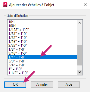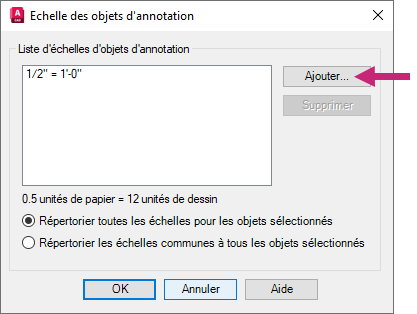 Notez que seuls les objets annotatifs dont l’échelle d’annotation correspond s’affichent dans le dessin.