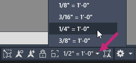Les calques constituent une approche courante de la gestion de la visibilité des objets d’annotation affichés à plusieurs échelles. Par exemple, le calque A-DETL-DIMS peut normalement être utilisé pour toutes les cotes. Si vous avez besoin de cotes à plusieurs échelles, vous devez ajouter la valeur du facteur d’échelle à la fin du nom du calque, par exemple A-DETL-DIMS-24 et A-DETL-DIMS-48 pour 1/2"=1'-0" et 1/4"=1'-0" respectivement.