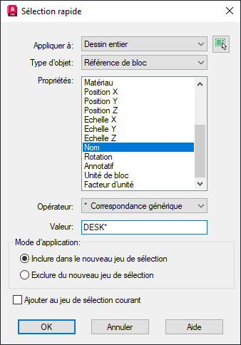 Supposons que je souhaite sélectionner tous les blocs qui correspondent au nom DESK*.