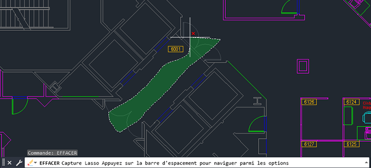 Remarque : Vous pouvez réutiliser un jeu de sélection précédent après l'avoir effacé. Lorsque vous êtes invité à sélectionner des objets, entrez p (Précédent) ou appuyez sur les touches Ctrl+Maj+L pour utiliser le jeu de sélection précédent.