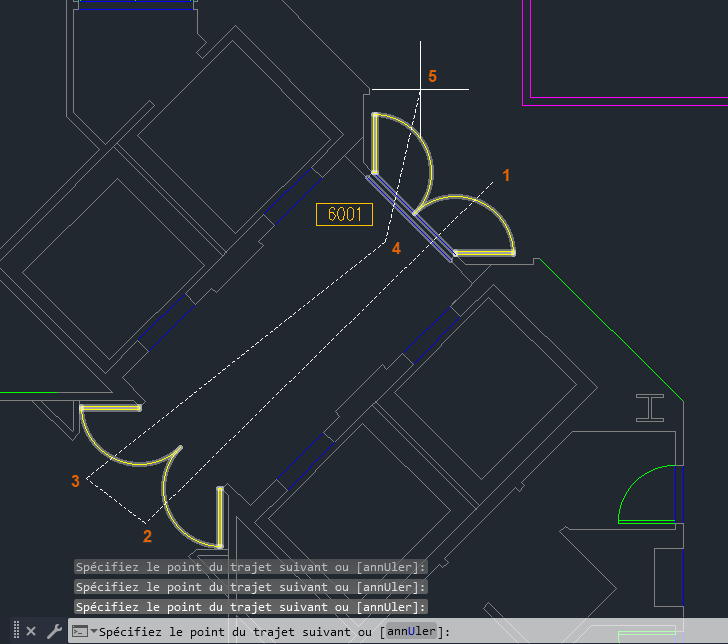 Spécifiez des points pour définir un trajet qui traverse les portes.