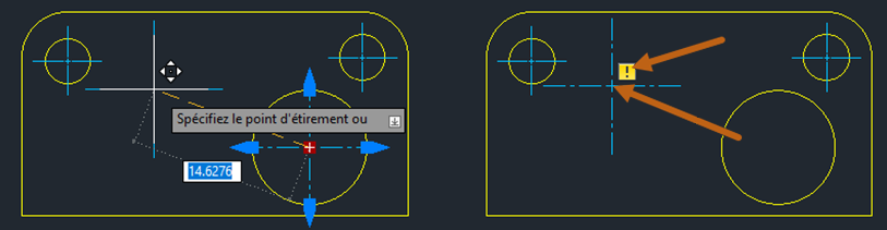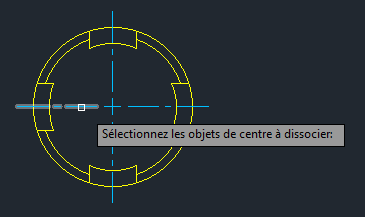 Les points de centre et les traits d'axe peuvent également être dissociés et réassociés à leurs objets.