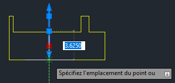 Les points de centre et les traits d'axe peuvent également être modifiés à l'aide des poignées. Placer le curseur au-dessus des poignées affiche les cotes dynamiques de la ligne d'extension.