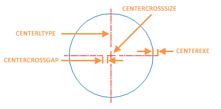 | CENTERCROSSGAP | Définit l'écart entre le point de centre et ses traits d'axe. | « 0,05x » | Dessin |