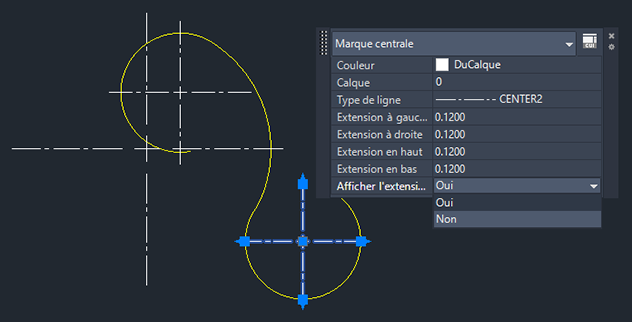 Je vous expliquerai comment réassocier et dissocier les points de centre et les traits d'axe plus tard dans cet article Réassocier et dissocier les points de centre et les traits d'axe.