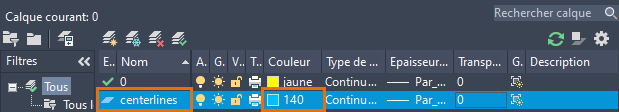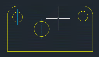 Définissons le calque des points de centre et des traits d'axe à l'aide de la variable système CENTERLAYER. Jusqu'à présent, tous les traits d'axe et points de centre ont été créés à l'aide du calque actuel et des propriétés, dans ce cas le calque 0.