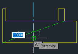 Le trait d'axe s'étend désormais au-delà de l'arête de la géométrie.