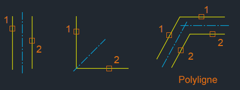 Un trait d'axe peut être créé entre le milieu apparent des points de départ et d'arrivée des segments de ligne sélectionnés.