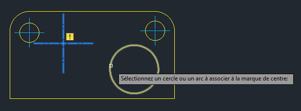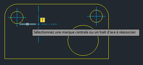 Pour réassocier un point de centre ou un trait d'axe