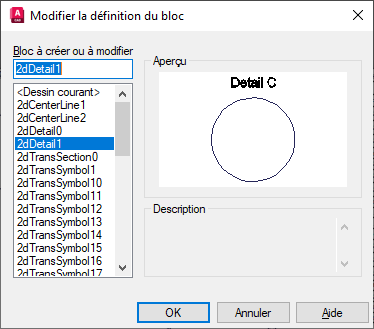 Faites un double-clic sur le texte du repère Detail C ou sur le cercle adjacent au texte pour afficher la boîte de dialogue Modifier la définition du bloc.