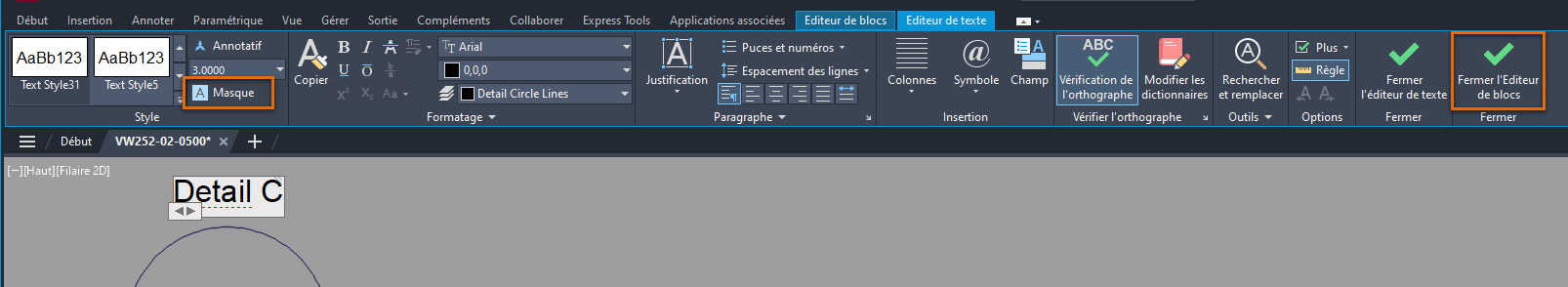 Le repère Detail C est un bloc qui contient le texte multiligne pour lequel vous souhaitez ajouter un masque d'arrière-plan.