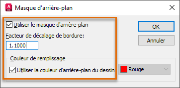 Conseil : Un masque d'arrière-plan ne peut être appliqué qu'aux objets texte multiligne, mais vous pouvez utiliser les commandes TEXTMASK et TEXTUNMASK d'Express Tools pour ajouter un objet de nettoyage à un objet texte sur une seule ligne. Express Tools n'est pas disponible dans AutoCAD LT.