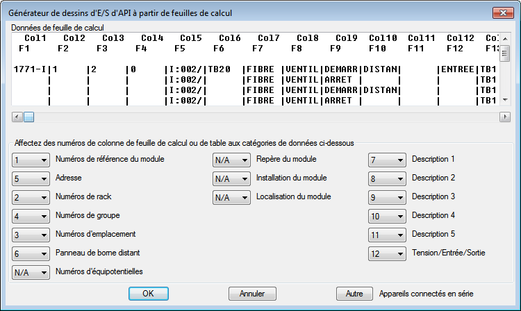 Les spécifications d'E/S API d'un projet, définies dans une feuille de calcul ou une table de base de données, permettent la génération automatique des dessins schématiques d'E/S.