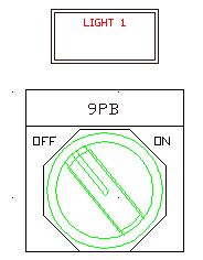 Le Navigateur accède à la représentation du panneau de contrôle et effectue un zoom sur la représentation physique du bouton poussoir. Notez que la description de 9PB s'est mise à jour pour répercuter les changements que vous avez apportés au composant schématique.