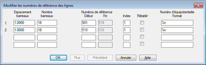 La boîte de dialogue Modifier les numéros de référence des lignes affiche la liste des diagrammes Ladder du dessin.